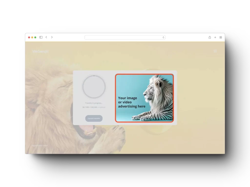 While data is being transferred with WeSendit®, users are focused on their work process. This moment offers an exclusive space for brand communication. Without distractions and without competing content.